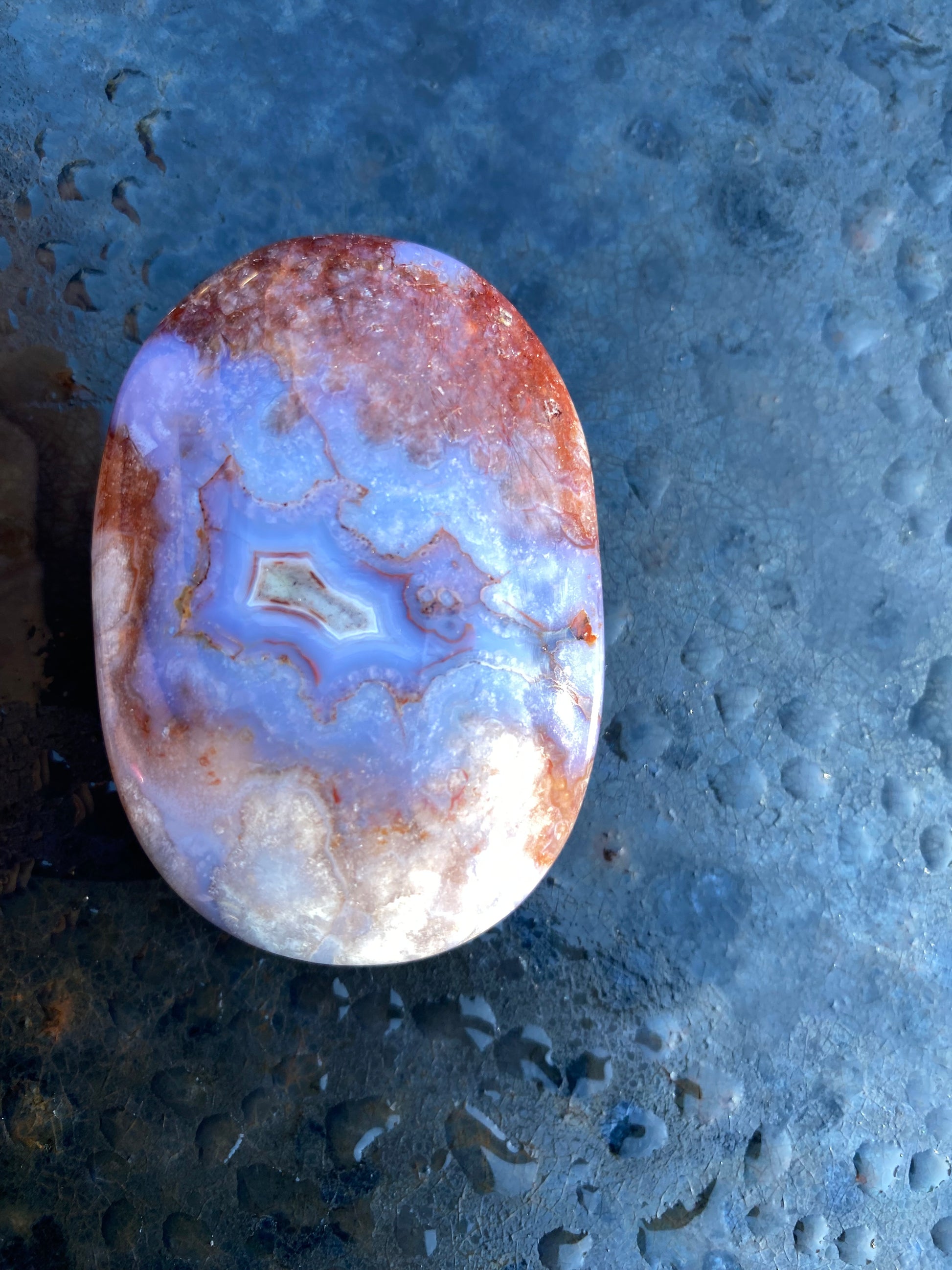 Beaitiful Blue Flower Agate Palm Stone